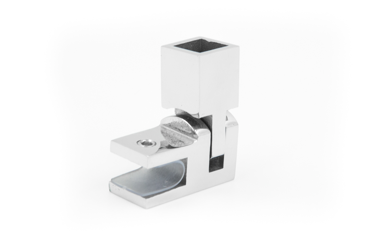 Коннектор предназначен для крепления трубы 15х15 мм к стеклу под произвольным углом при монтаже штанг верхней обвязки душевых кабин.