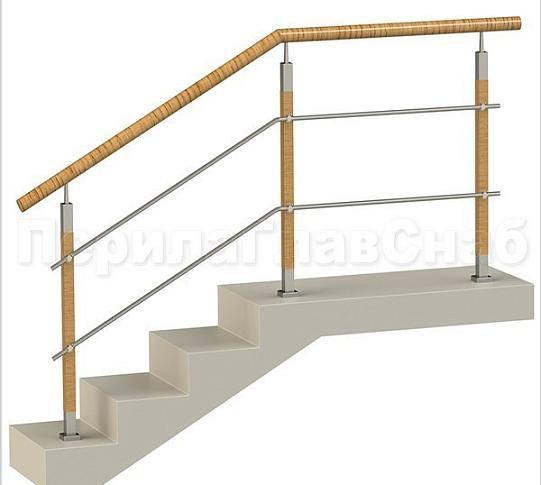 - Два ригеля на держателях, пластиковый поручень и квадратные деревянные стойки