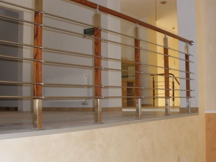 - Три ригеля на держателях, квадратные поручень и деревянные стойки