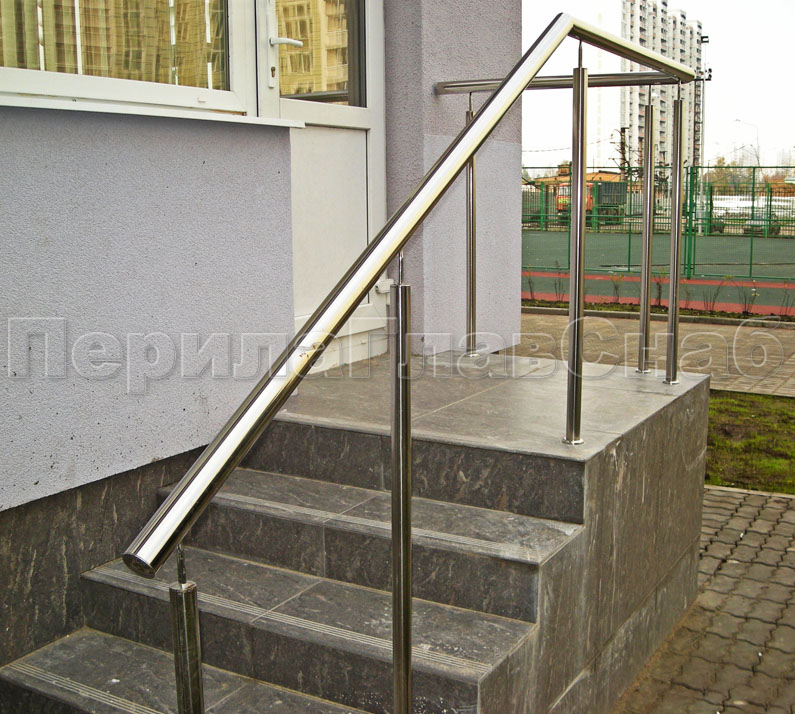 Наиболее дешевый тип ограждений. Это ограждения только на стойках с поручнем. Часто используются как перила для входных групп, для крыльца аптек. Так же могут использоваться как дополнительные перила на широких лестницах (более 2м).