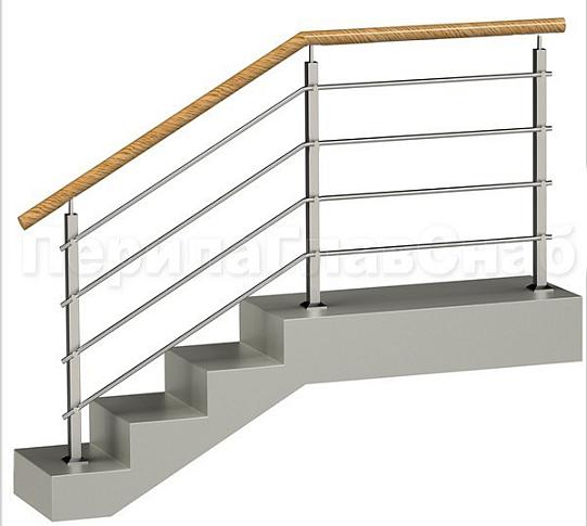 - Четыре ригеля на держателях, круглый пластиковый поручень и квадратные стойки