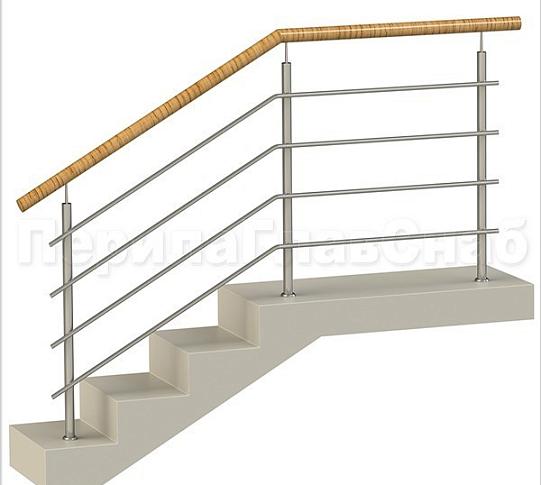 - Четыре ригеля на сварке, круглый пластиковый поручень и круглые стойки