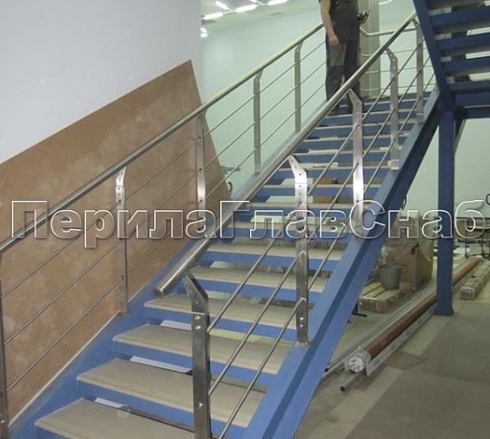 - Ограждение с нестандартными нержавеющими стойками и ригельным заполнением