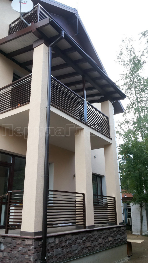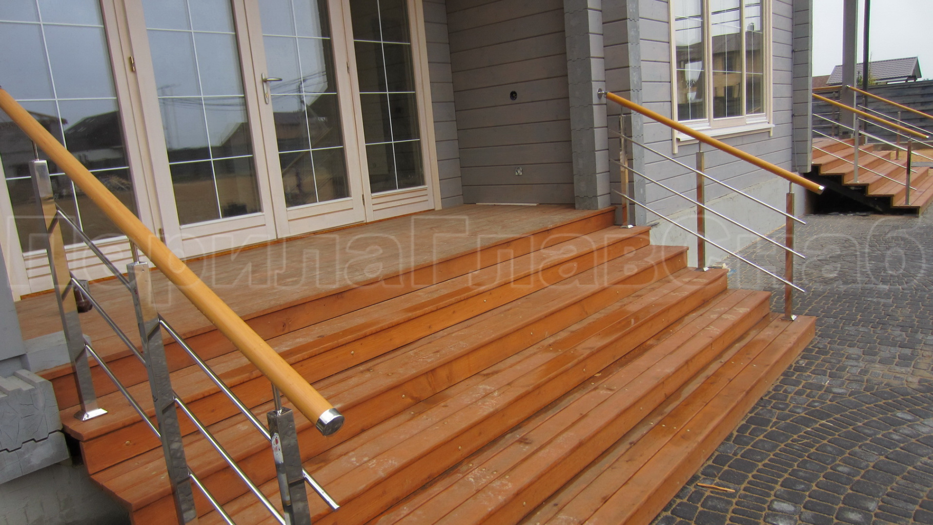 - Нержавеющие ограждения с деревянными вставками - это необычно. Ваш дом будет выгодно отличаться от соседей.