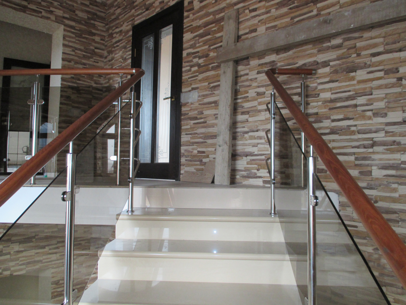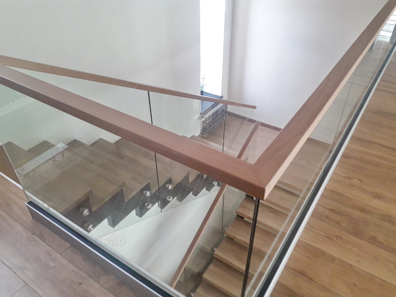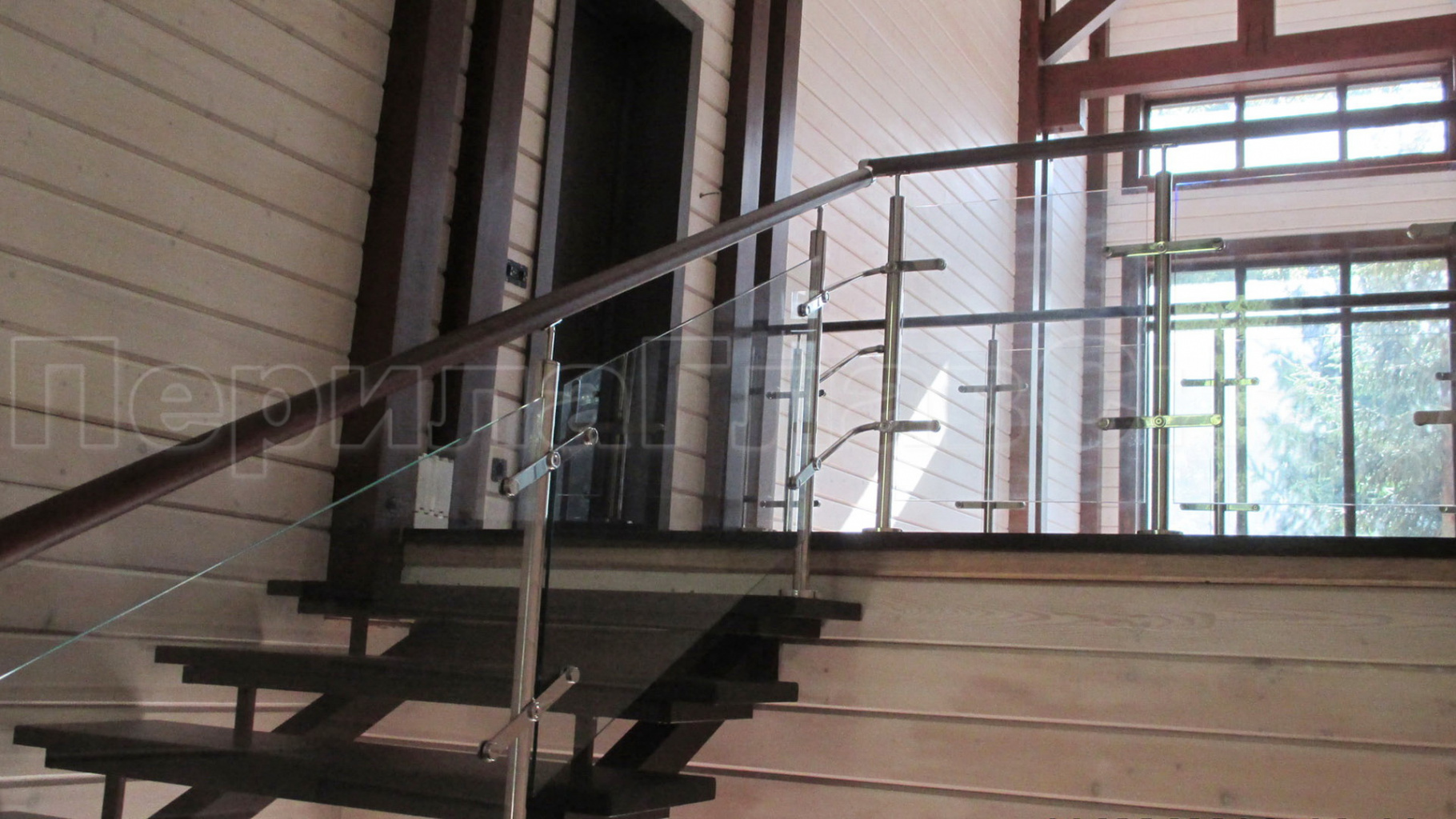 - Лучшая конфигурация для дома: квадратные деревянные стойки, квадратный деревянный поручень, заполнение из каленого стекла 8мм.