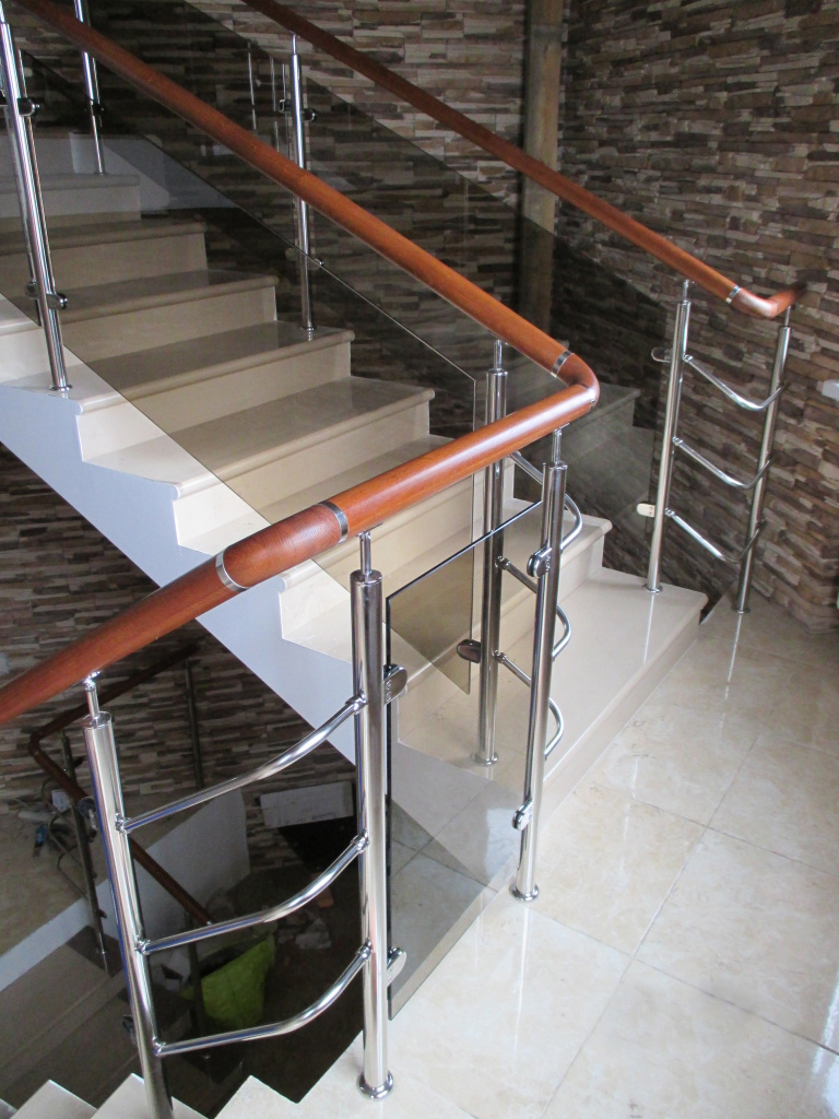 - Вы можете выбрать любой цвет для деревянных элементов в нержавеющих ограждениях.