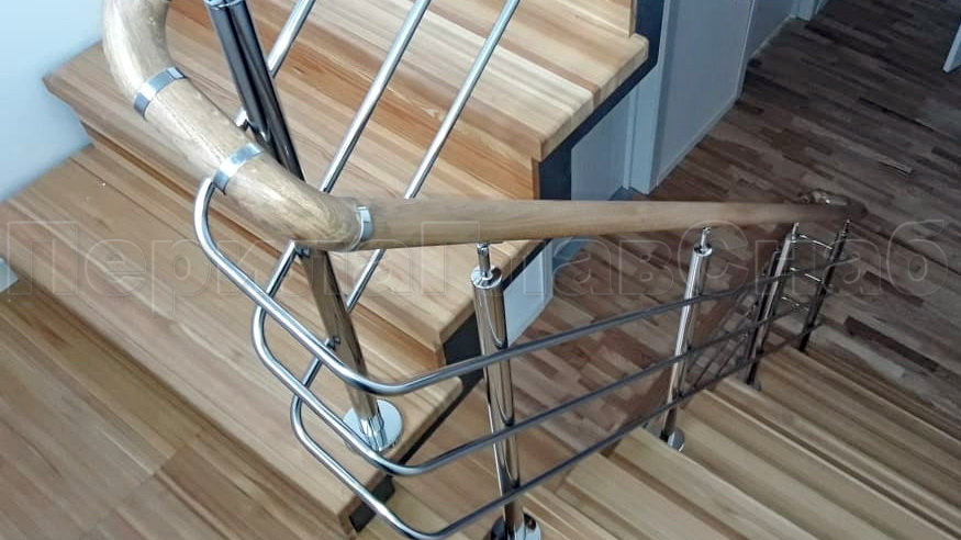 - Обязательно, для сохранности целостности поручня и во избежании растрескивания (хотя при сушке древесины и используется специальная технология) на окончаниях поручня использовать специальный нержавеющий отвод. И в случае квадратного, и в случае круглого поручня.