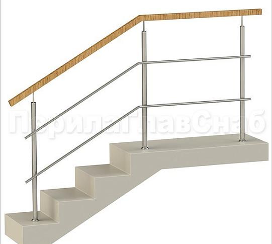 Записаться на встречу Два ригеля на сварке, квадратный деревянный поручень и круглые стойки