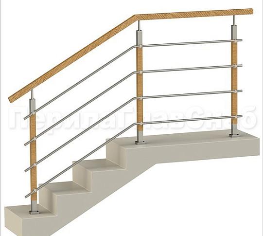 - Четыре ригеля на держателях, квадратный деревянный поручень и стойки с деревянными вставками