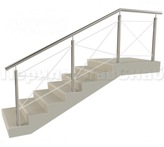 - Ограждения из нержавейки. Заполнение из тросиков (нестандартная конфигурация) для крыльца