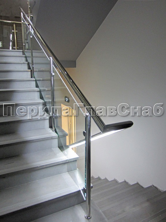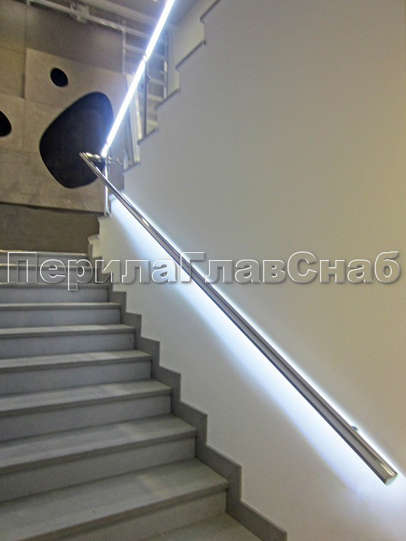 - Поручень труба Ф 42,4мм с пазом и встроенной LED лентой, прерывается на поворотах, окончание поручня заглушка