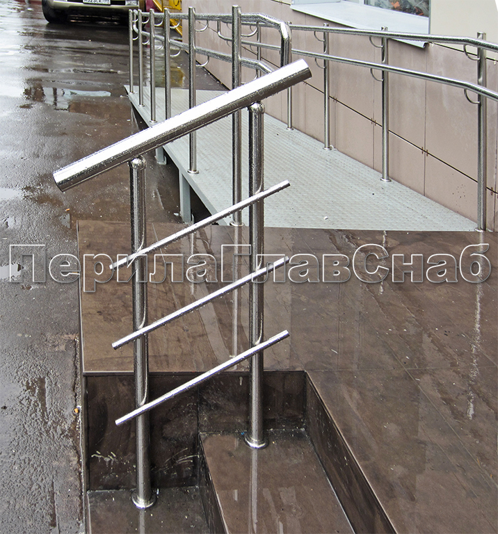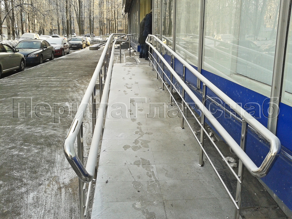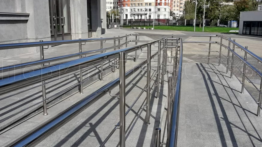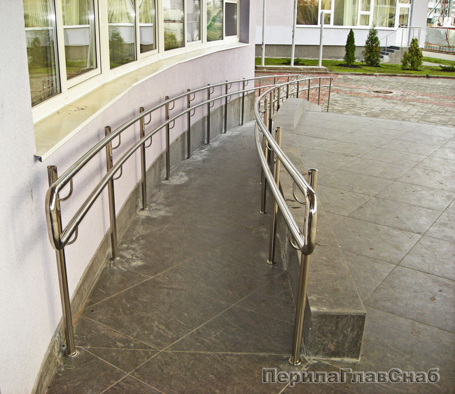 - Опорные перила из нержавейки для инвалидов-колясочников не должны иметь скользкую поверхность. В противном случае за них не будет удобно держаться.