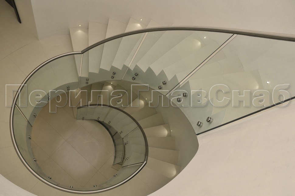 Ограждение с профильным поручнем с пазом на точечном креплении на лестнице