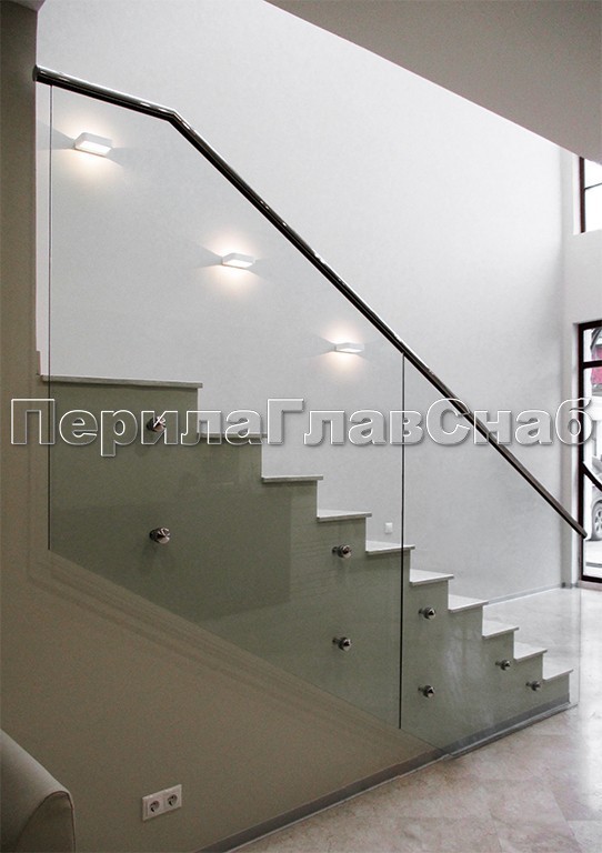 Ограждение без поручня на точечном креплении на лестнице