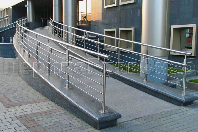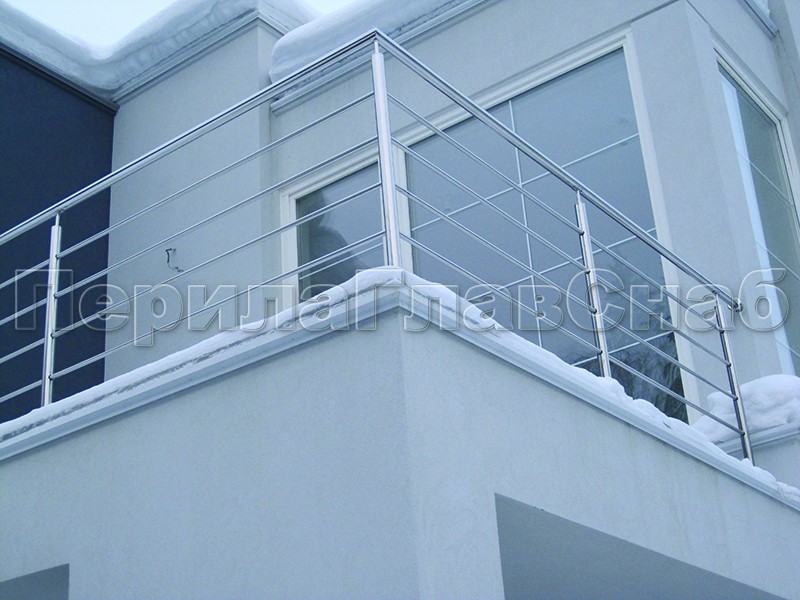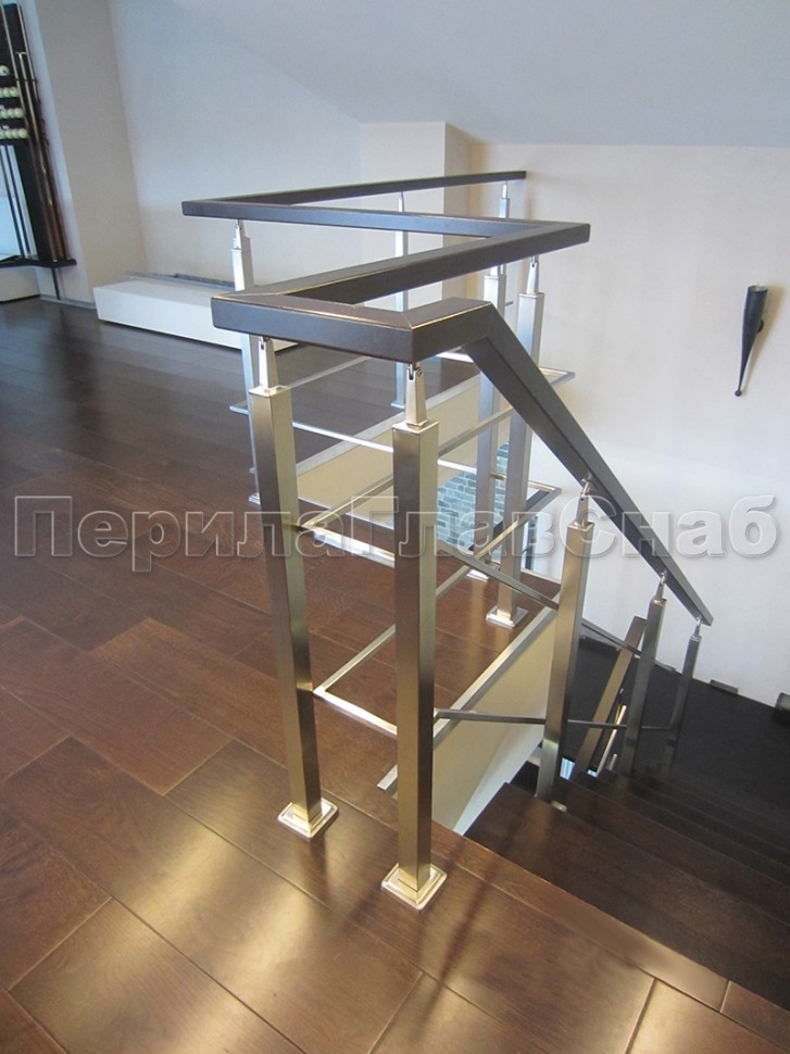 - Четыре ригеля на сварке, круглый поручень и квадратные стойки