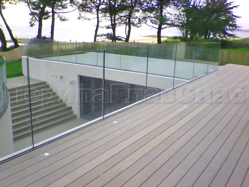 Каленое стекло очень хорошо выдерживает нагрузки на выдавливание - до 54 кг на метр. Поэтому, когда дети будут играть в саду или дворе они не смогут разбить перила и сами не травмируются. Еще безопаснее будет использовать каленый триплекс на микростойках. Такие стеклянные стены просто невозможно будет сломать.