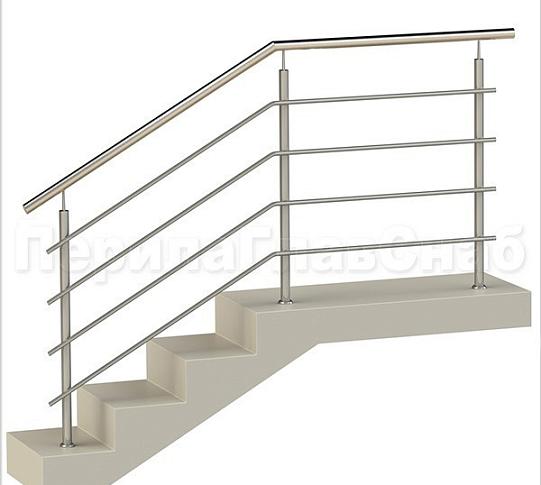 - Четыре ригеля на сварке, круглый поручень и круглые стойки для крыльца