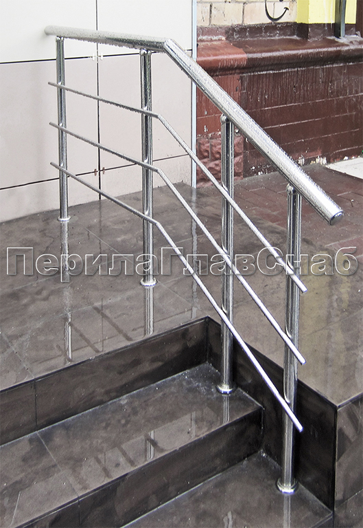 - Три ригеля на сварке, круглый поручень и круглые стойки для крыльца