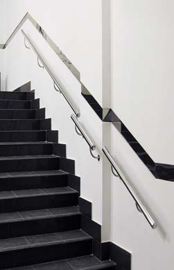 Пристенные поручни модели k731-33 или k730-33 подойдут для современных зданий, где чаще всего используются лестницы с маршем в 4200 мм или 10 ступеней. Для таких лестниц длинна лестничного поручня должна быть 3300 мм.
