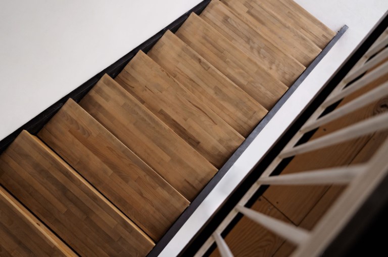 Обязательно оставляются компенсационные зазоры (обычно 3–5 мм) между ступенями и металлическими элементами. Эти зазоры необходимы, чтобы избежать деформации материала в процессе его температурного расширения.
