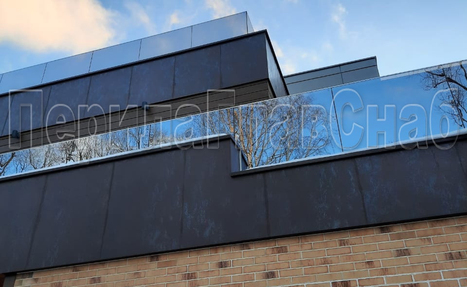 Зазор между стеклом и парапетом стены дает возможность талым и дождевым водам стекать не задерживаясь на крыше.