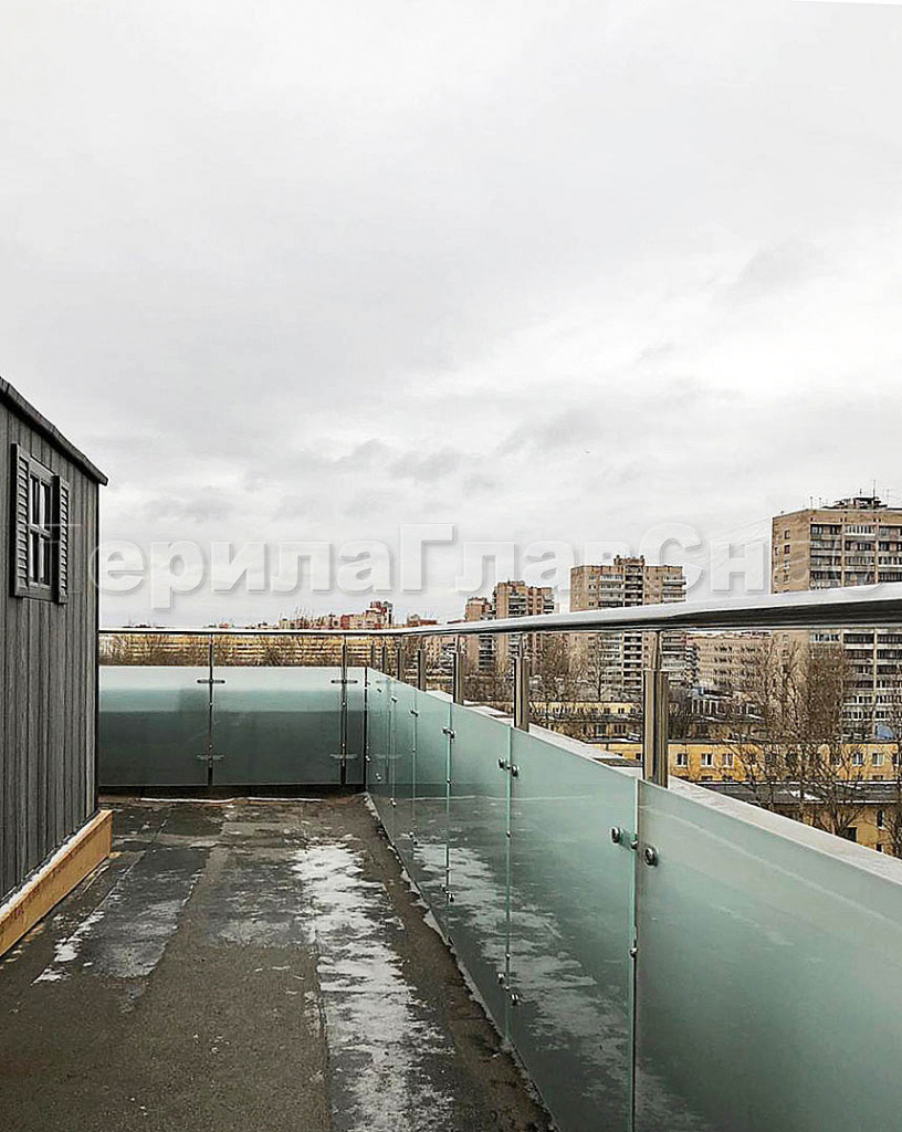 Стеклянные ограждения для крыш и кровли должны отвечать всем требованиям безопасности. Мы настоятельно рекомендуем стекло триплекс толщиной 6+6мм или 8+8мм. Триплекс – это склеенные между собой два листа стекла. Если одно стекло бьётся, то второе благодаря клейкому слою держит осколки и они не рассыпаются и не могут поранить окружающих. Второй фактор – это толщина стекла. Чем толще стекло в ограждениях кровли, тем большую ветровую нагрузку оно будет выдерживать и тем меньше будет естественный люфт такого стекла. В целях экономии бюджета, когда Вы сильно ограничены в средствах, но хочется сделать покрасивее, можно установить обычное закаленное стекло толщиной не менее 12мм. Такое решение не приемлемо для коммерческих объектов и обычно устанавливается на крышах частных домов, где проходимость крайне низкая и вероятность разбития стекол минимальна.