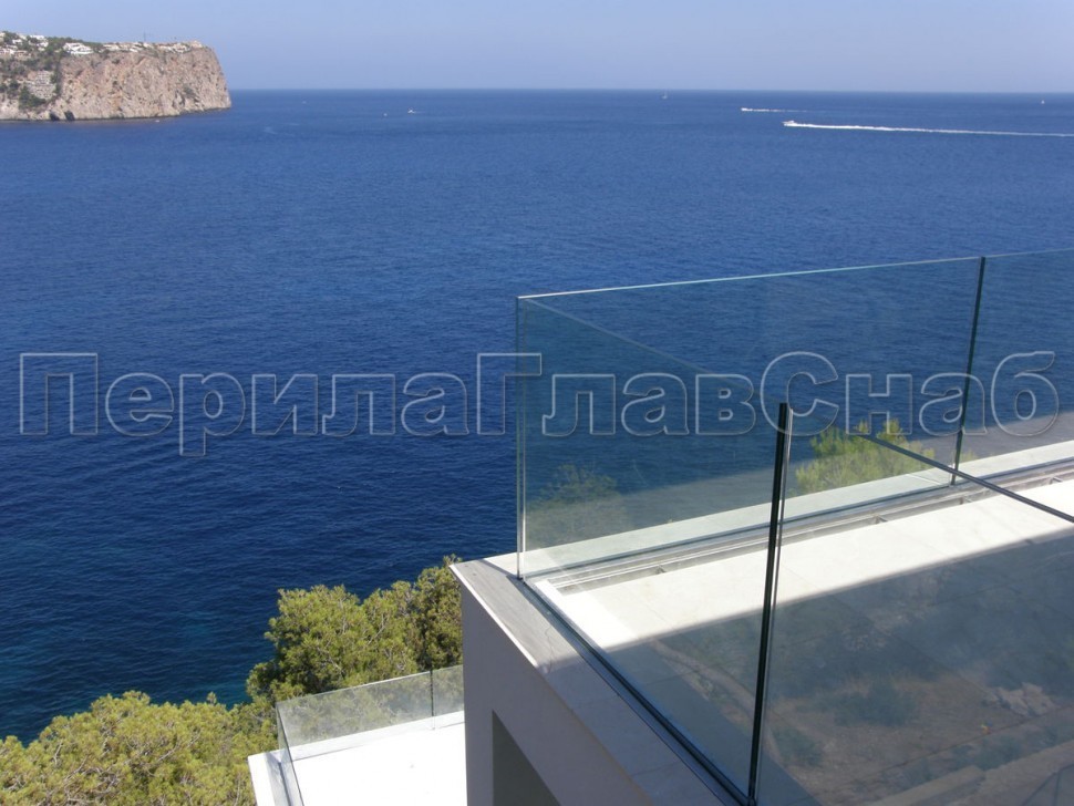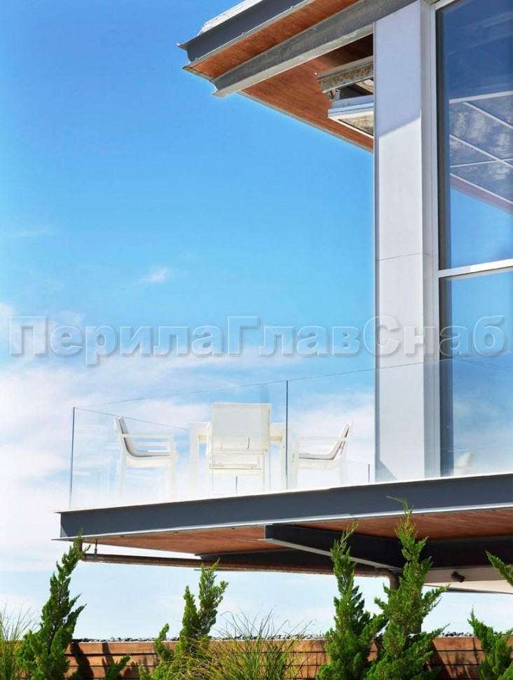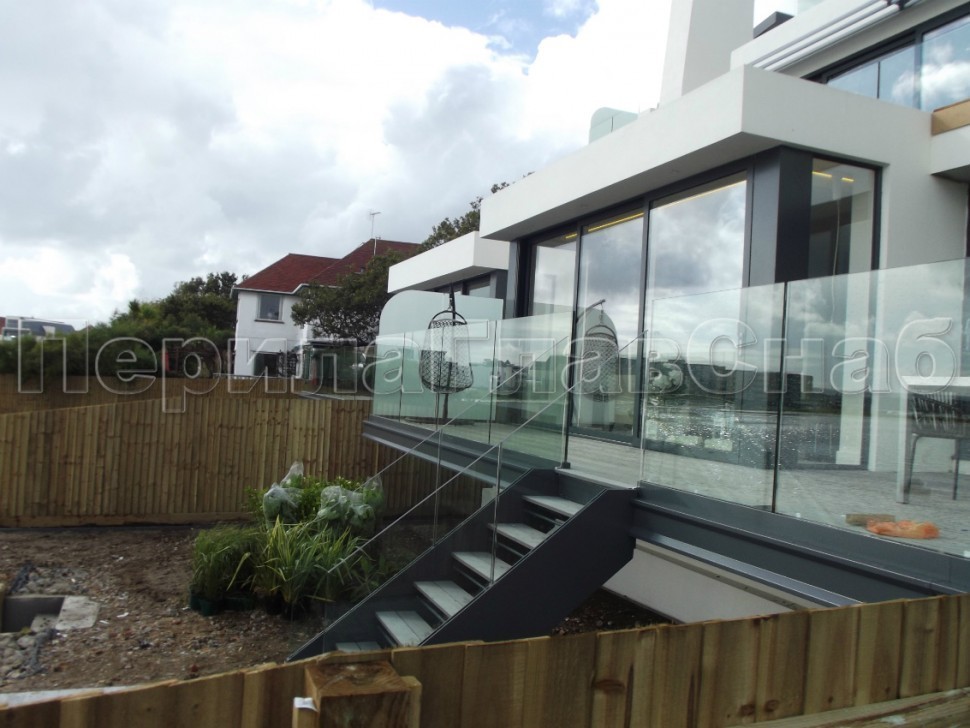Ограждение с профильным поручнем с пазом на точечном креплении