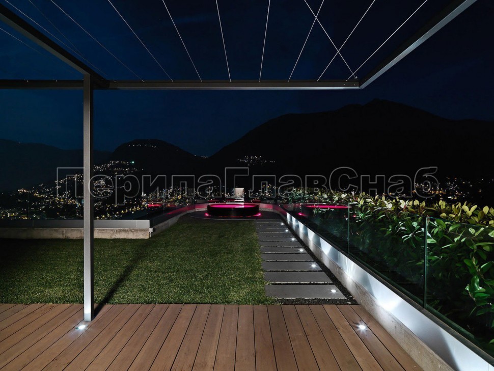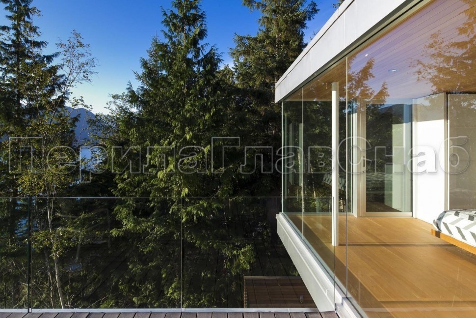 Ограждение с деревянным поручнем на выносе на точечном креплении