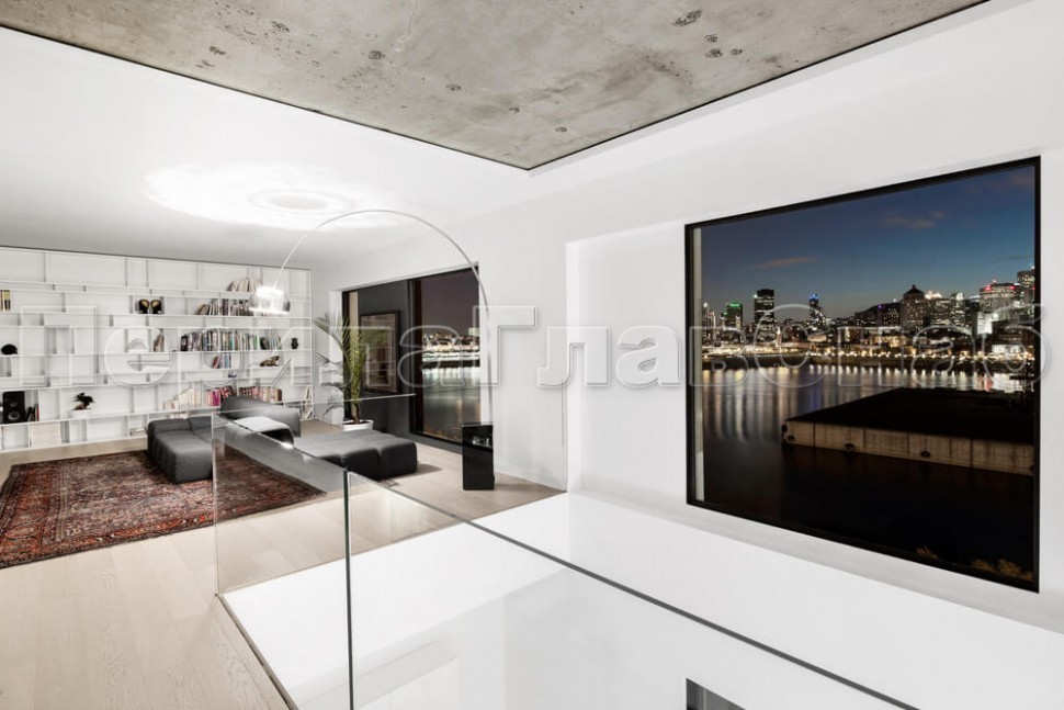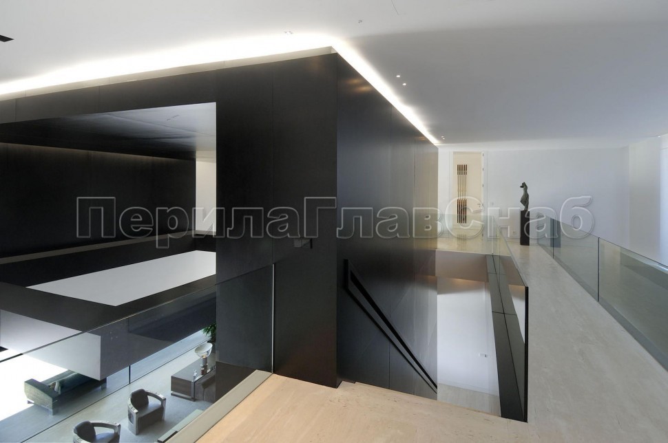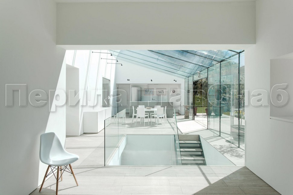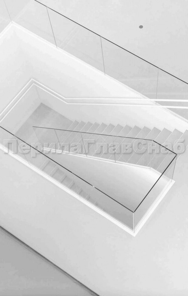 Ограждение с профильным поручнем с пазом на точечном креплении на лестнице