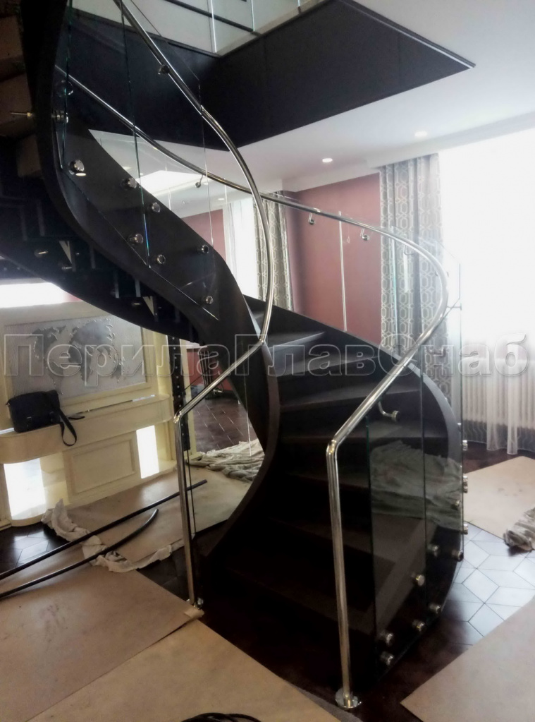 - Винтовые или забежные лестницы, как правило, устанавливаются в коттеджах, частных домах или таунхаусах, со специально разработанным под жильцов дизайном интерьера. Стеклянные перила впишутся в любой дизайн, а для дизайнера - это возможность выразить любую идею.