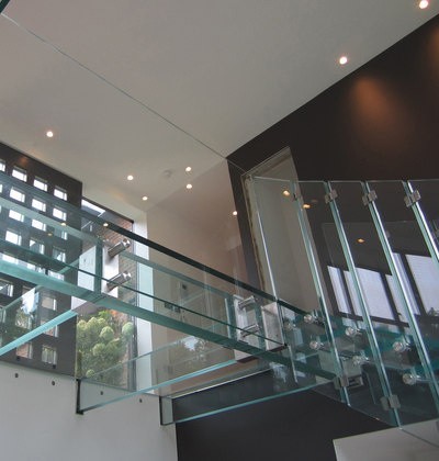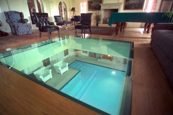 Интересное дизайнерское решение. Пол из ультрапрозрачного стекла в коридоре на спальном этаже дома.