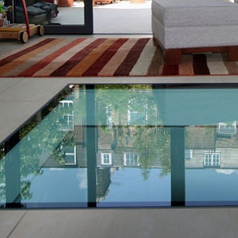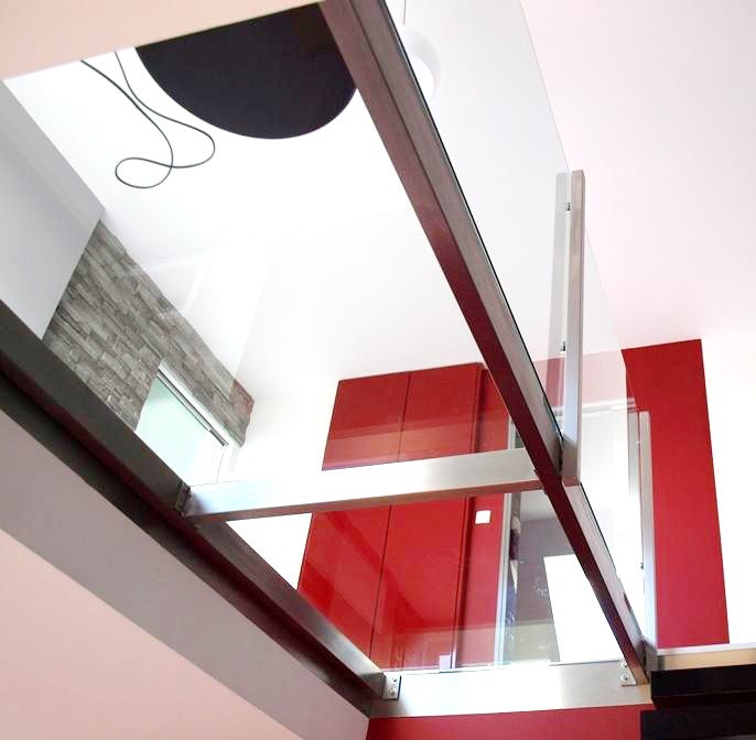 В этом случае стеклянный пол является не только декоративным элементом, он также значительно облегчает конструкцию самого перекрытия.
