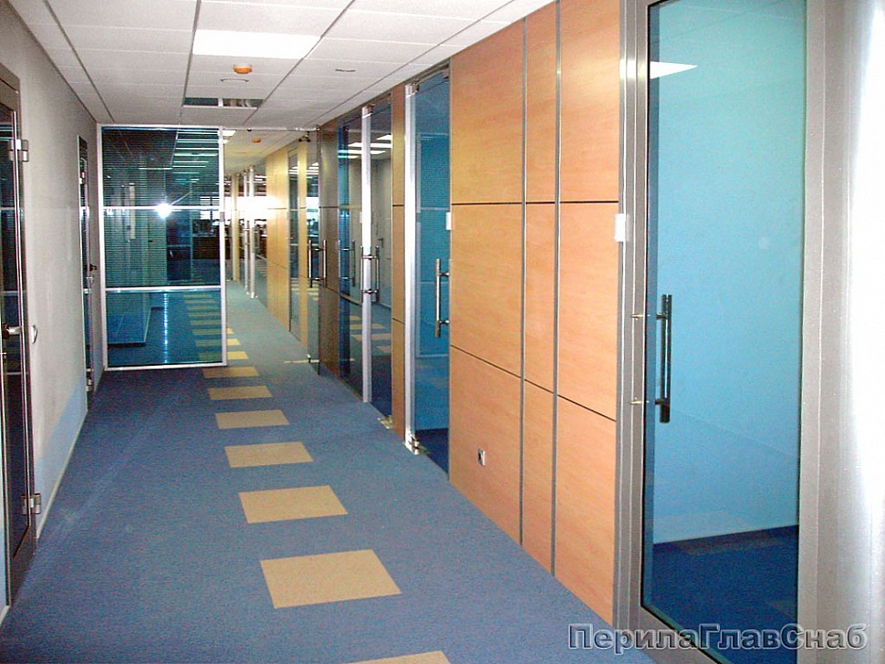 - Прозрачное стекло. Универсальное решение, визуально объединяющее пространство.