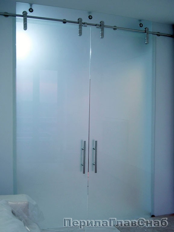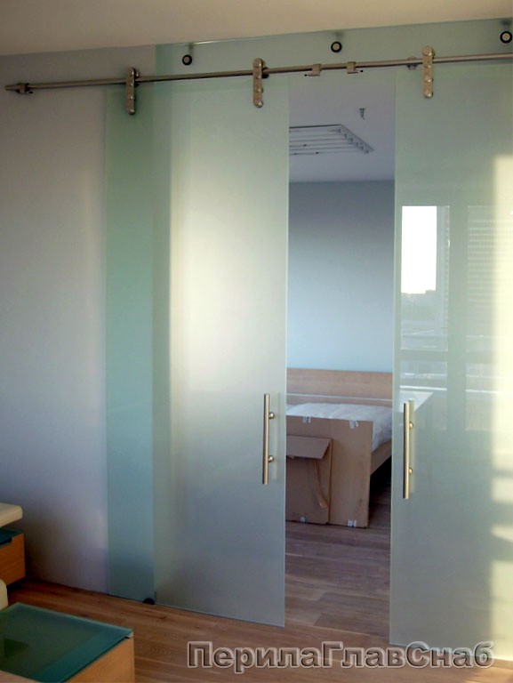 Двустворчатые откатные стеклянные двери с межкомнатными перегородками